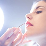los labios escogí el color rojo intenso de la gama Giordani Gold de Oriflame y los terminé con un